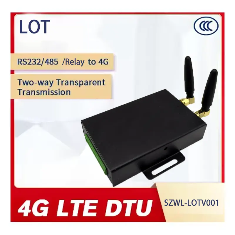 This 4G network Wi-Fi transmission module, model SZWL-IOTV001, is designed for industrial data logging and acquisition applications. It supports various interfaces, including 1DI, 2AI, 1RS485, and 1RS232, providing flexibility in connecting multiple devices and systems. The module is customizable to meet specific user requirements and operates within a power supply range of DC 5-28V. Its compact dimensions (86x54x10 mm) make it suitable for integration into diverse industrial environments.