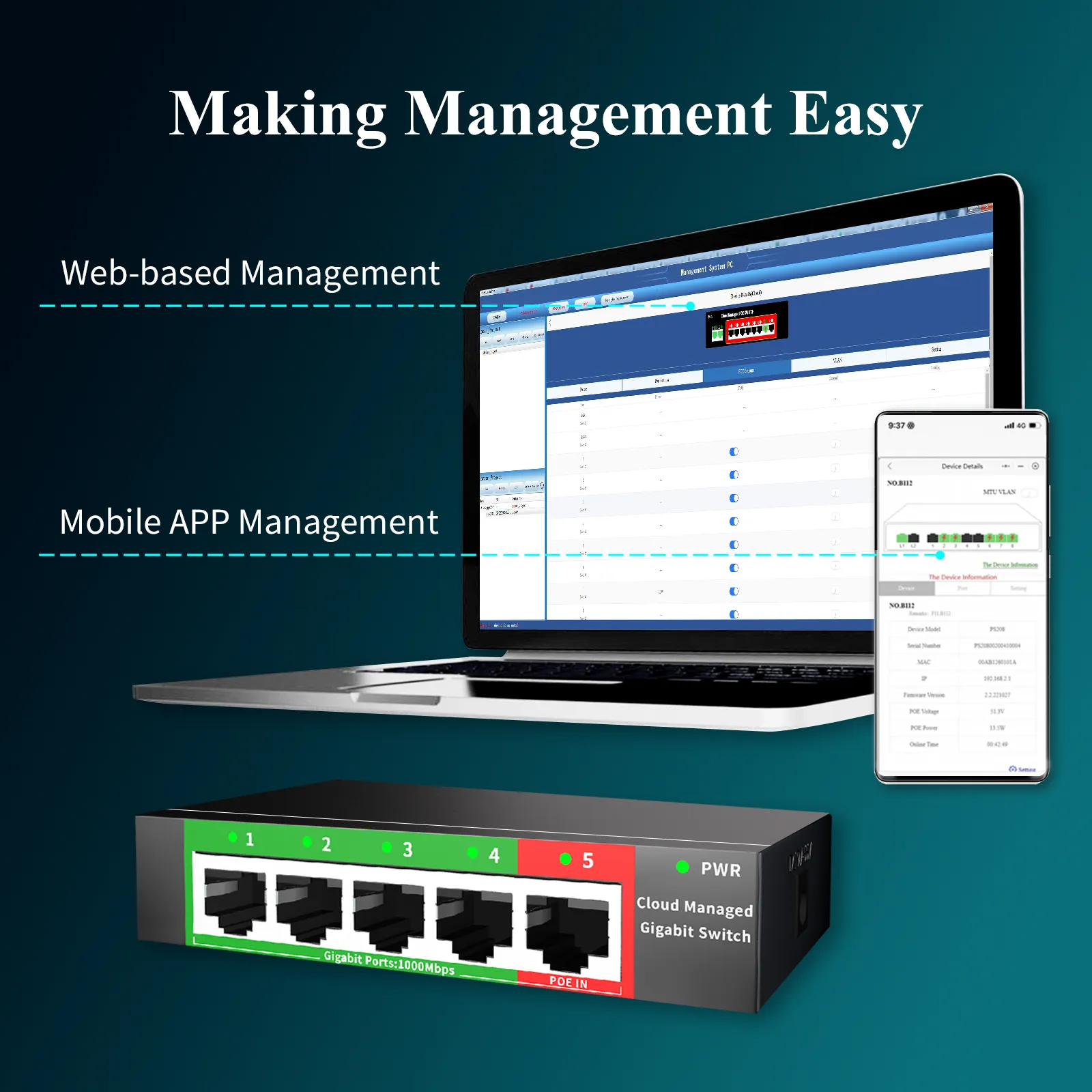 - Ports: 5 RJ45 ports
